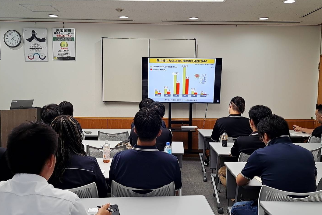 また、6月から施行された 熱中症対策義務化 に基づき、現場での具体的な実践を再確認するとともに、社内事故の検証を通じて再発防止への意識を高めました。加えて、これから迎える秋の繁忙期に向け、社員一人ひとりが 「ゼロ災」 を合言葉に安全最優先の姿勢を改めて確認しました。